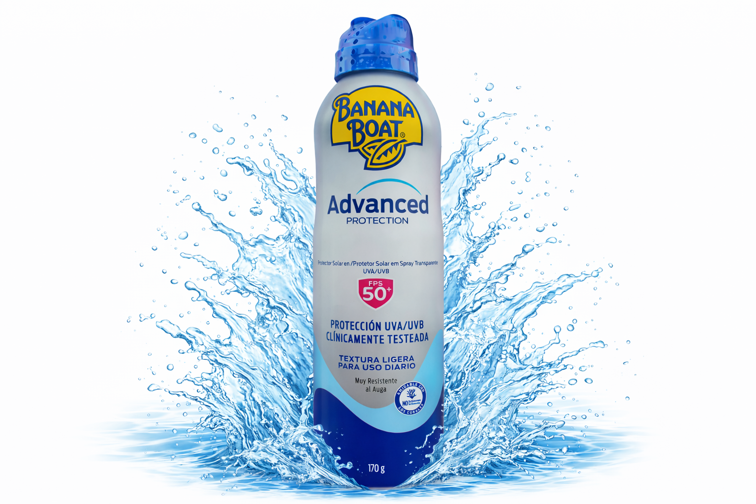 El Protector Solar Banana Boat Advanced FPS 50+ ofrece una textura ligera, de rápida absorción y muy resistente al agua, ideal para actividades al aire libre, playa y pileta.